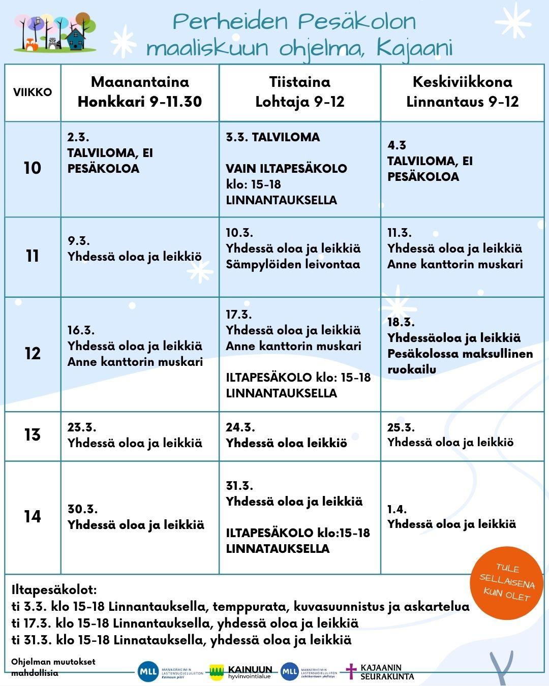 Talvilomaviikolla 2.3.-6.2.26 Kajaanissa vain